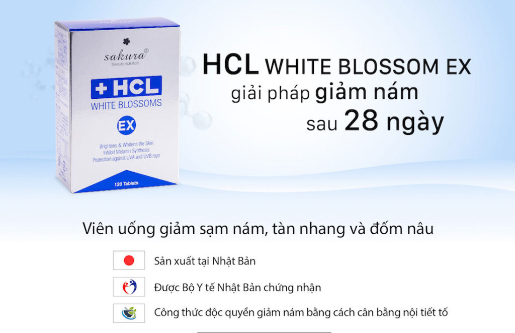 Công dụng tuyệt vời của viên uống đặc hỗ trợ điều trị nám da thâm niên Sakura HCL White Blossoms EX từ Nhật Bản
